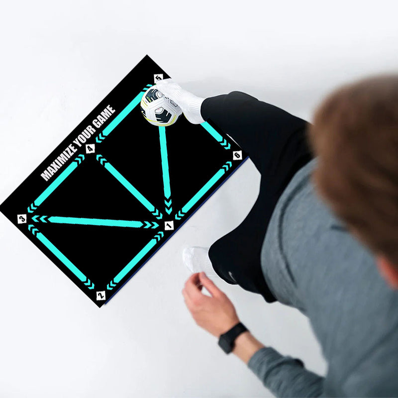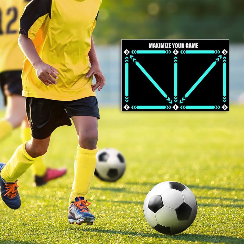 【Förbättrade bollkontrollfärdigheter】Den halkfria fotbollsträningsmattan är speciellt utformad för att förbättra fotvalvskontrollen, vilket gör det möjligt för spelare att bemästra sidleds bollrörelser för förbättrade dribblingsfärdigheter och överlägsen bollkontroll. Numrerade steg och pilar underlättar övningskombinationer för att förbättra fotarbete, hoppkraft, kontroll och mycket mer.