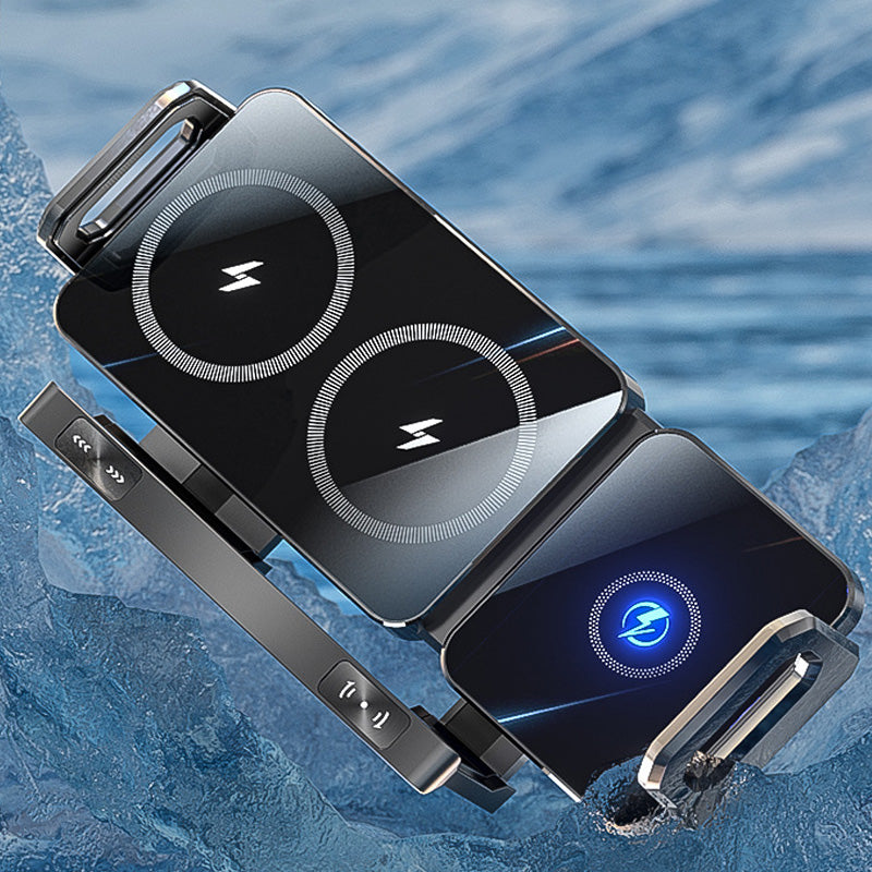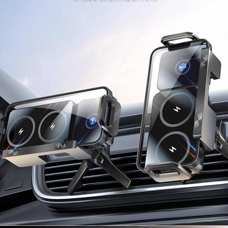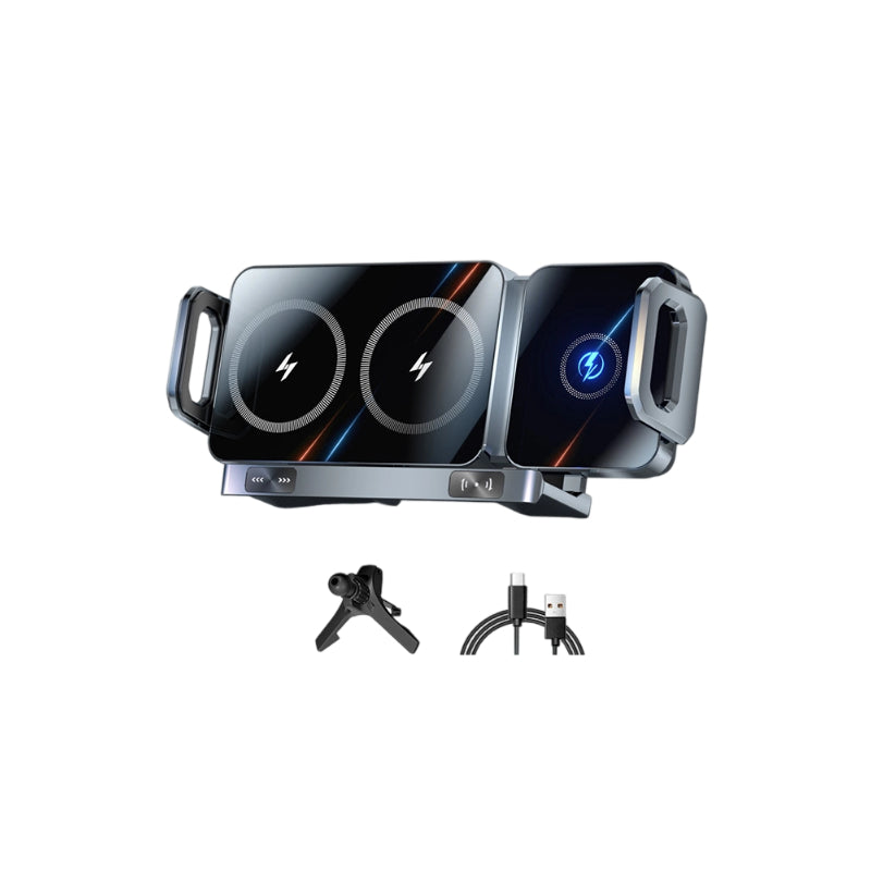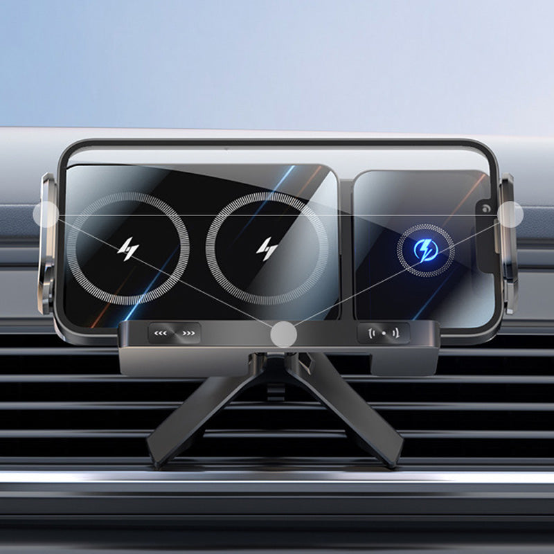Biltelefonhållare med dubbla spolar för trådlös laddning