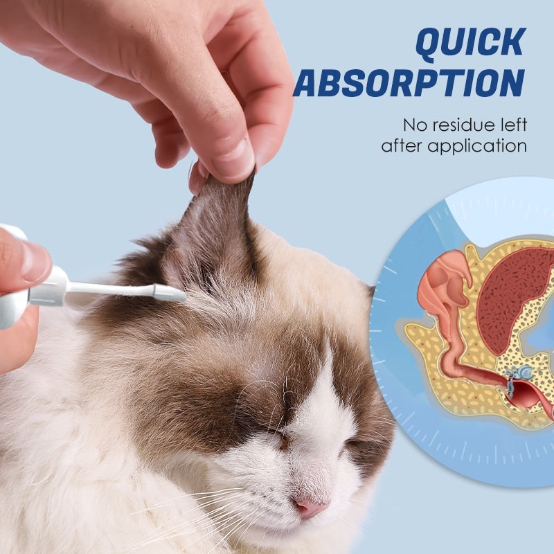 SNABB ABSORPTION, INGA RESTER - Formulan absorberas snabbt i örat och lÀmnar inga rester. Den Àr tillverkad med ett mjukt öronmunstycke i silikon och Àr skonsam mot ditt husdjurs öron och förhindrar irritation. Inget behov av djuprengöring, vilket sparar tid och krÄngel.