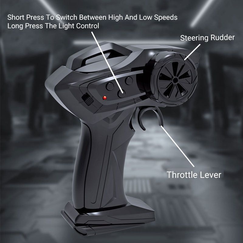 2,4G RC-TEKNIK FĂR FLERA BILAR - Njut av sömlös racing med avancerad 2,4G RC-teknik, som gör att flera bilar kan tĂ€vla utan störningar. Utmana dina vĂ€nner eller familj till spĂ€nnande tĂ€vlingar och se vem som kan bemĂ€stra banan, samtidigt som du njuter av tĂ€vlingsandan i fjĂ€rrstyrd racing!