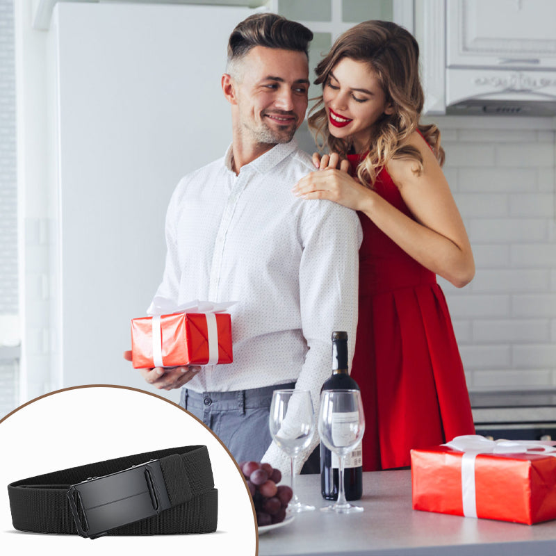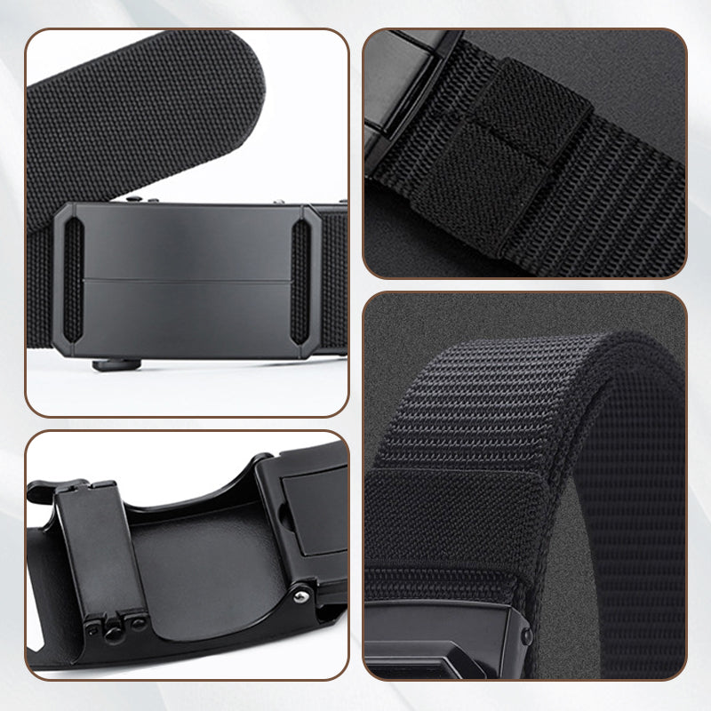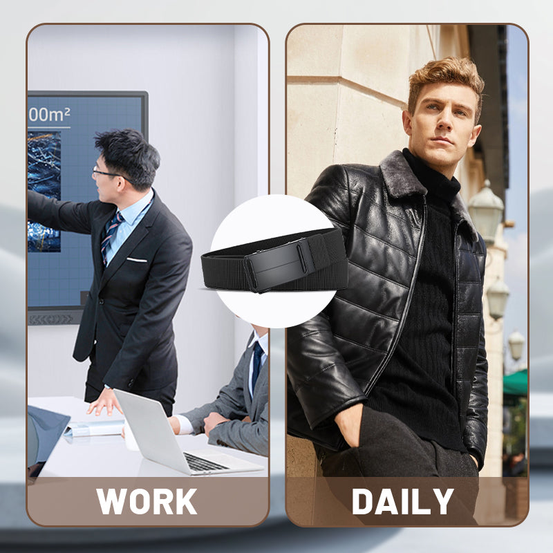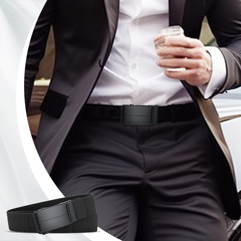 AUTOMATISK SPÄNNEHUVUD – Bältet har ett modernt automatiskt spänne som eliminerar behovet av fasta hål. Spännets stift kan sättas in var som helst längs bältet, så att du fritt kan justera midjemåttet för maximal komfort. Njut av en perfekt passform varje gång!
