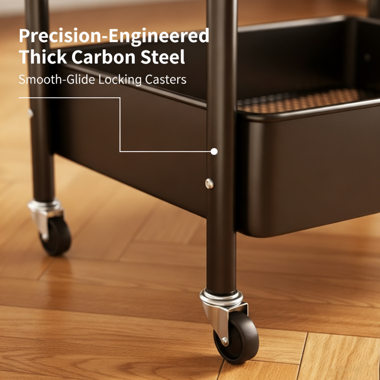 SMIDIGA LÅSBARA HJUL – Flytta enkelt vagnen dit du behöver den, från köket till vardagsrummet. Låsbara bromsar säkerställer att den står stadigt på plats när du har hittat den perfekta platsen.