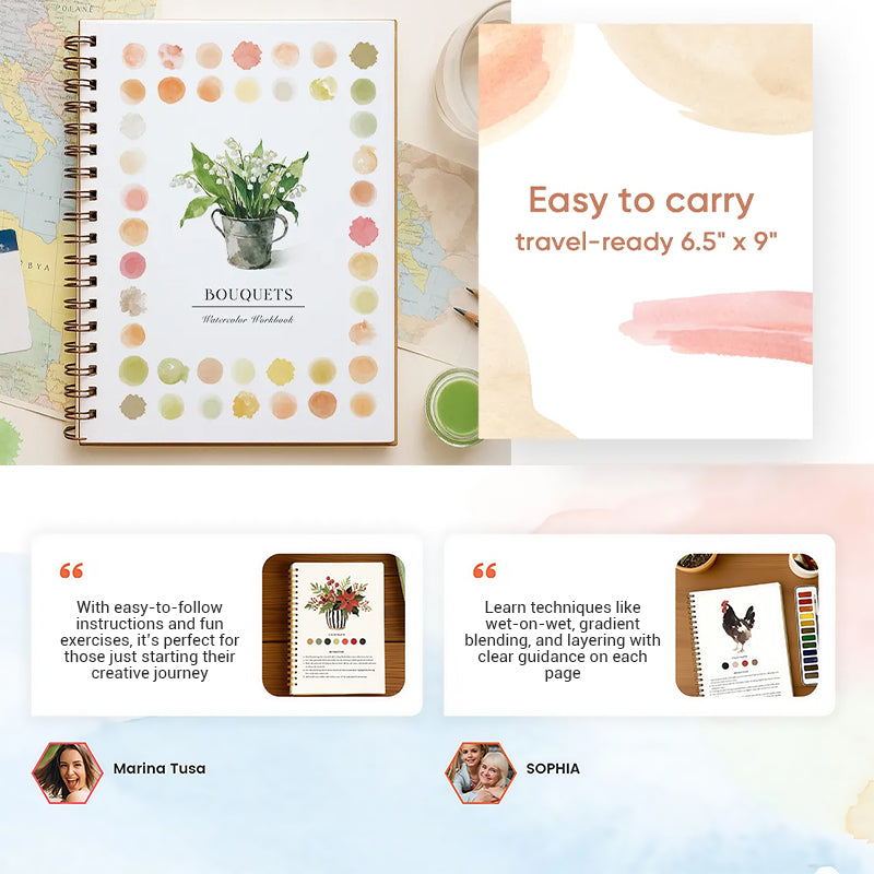STEG-FĂR-STEG-INSTRUKTIONER  â Arbetsboken innehĂ„ller detaljerade steg-för-steg-instruktioner som hjĂ€lper dig att bemĂ€stra grunderna i akvarellmĂ„lning. LĂ€r dig tekniker som vĂ„tt-i-vĂ„tt, övergĂ„ngsblandning och lager-pĂ„-lager med tydlig vĂ€gledning pĂ„ varje sida.