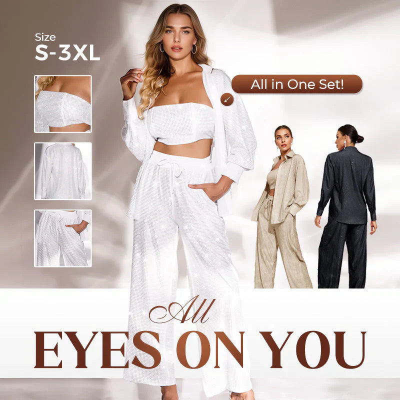 Kvinnors Kavaj Paljetter & Vida Byxor (3-Delat Set)🔥FRI FRAKT
