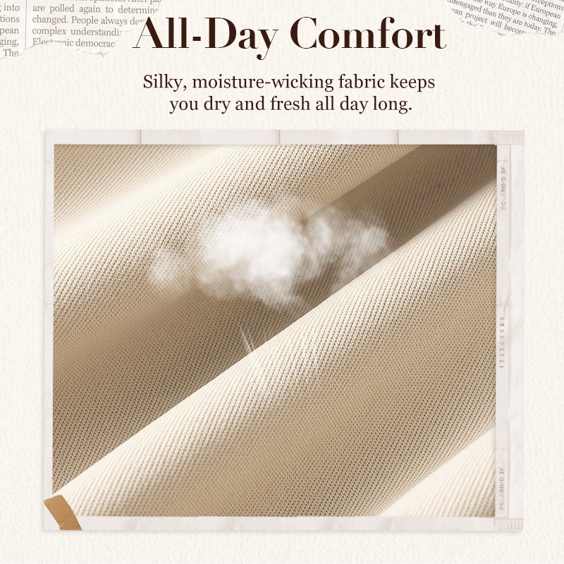 FUKTTRANSPORTERANDE, ANDNINGSBAR TYG – Tillverkad i silkeslent, andningsbart tyg som transporterar bort fukt och håller dig fräsch och torr hela dagen. Materialet med hög stretch formar kroppen utan att kompromissa med komforten – även vid långvarig användning.